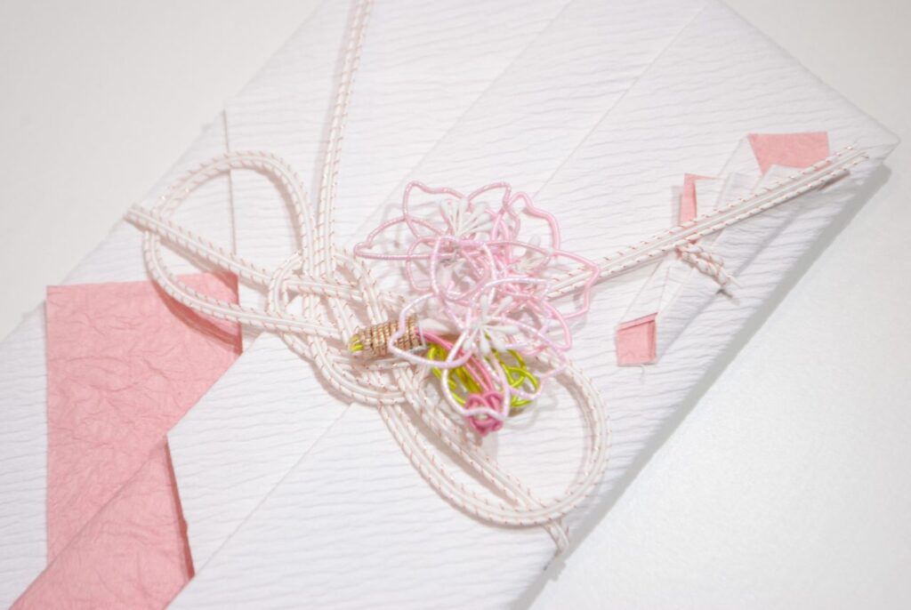 外の封筒・水引を包結さんが、中のお金を入れる包紙を辻徳の懐紙で製作しております。