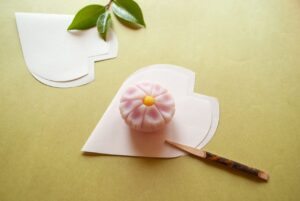懐紙をさくらの花びら形やハート形に切り抜きました。