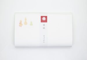 ひょうたん柄の懐紙です。懐紙の上と下のほうに合計6個の瓢箪が描かれています。六瓢(無病)は縁起の良い印として使われています。