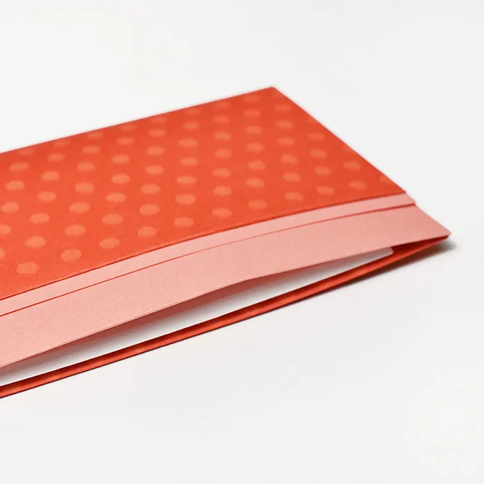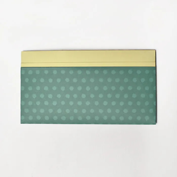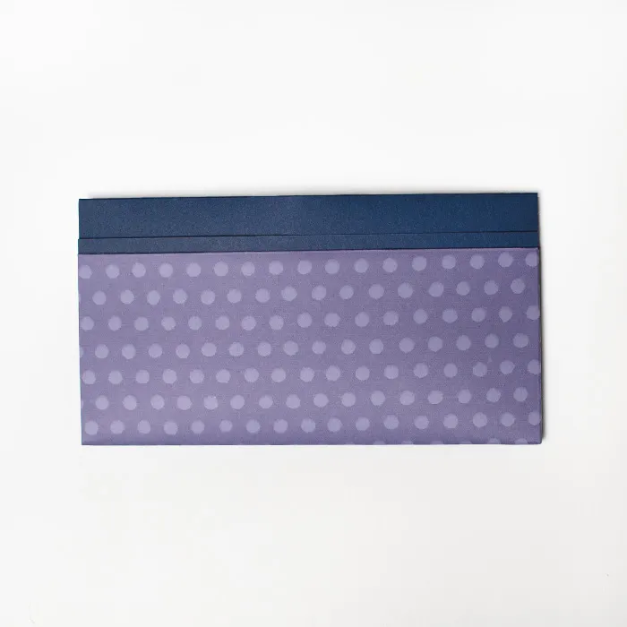 伝統の折形を元に作った懐紙入れです。「HUTAE」はポケットが2つあり、奥側の深い方に懐紙を入れて、表側の浅い方に使用済みの懐紙を入れることができるので、便利に使えます。白無地懐紙20枚入りです。