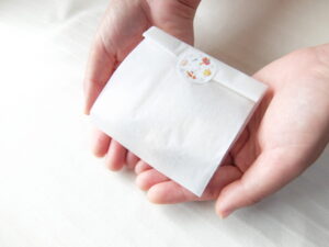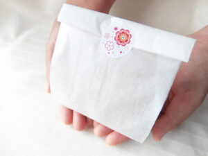 内側に防水加工を施した懐紙を、マチ付きの袋状に仕上げました。